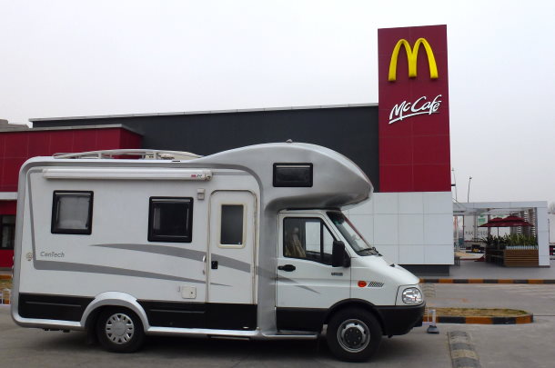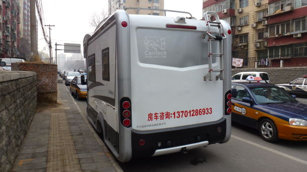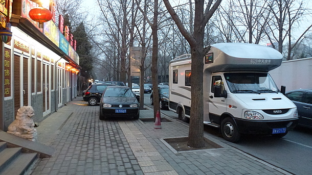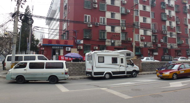 虽然我相信在北京很难找到一个足够大的地方来停放房车,但是那天晚上我们找到了一个停放场所,没有任何问题。