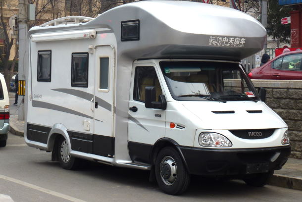 当我们快到目的地时已经是傍晚了,我们立刻看见一辆房车在街上。---欧洲类型的依维柯。