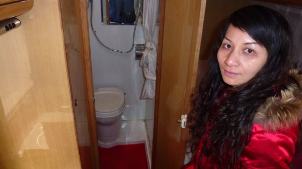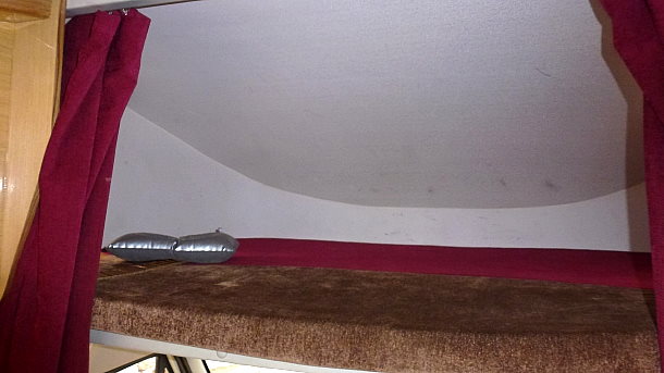 因为我们预订的是上下铺。这块的空间接近边缘,由于它鼻子的形状,高度和长度对睡在这儿的人会有一些限制。