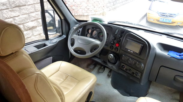驾驶员座椅和仪表盘都是常规多功能车的风格,只有数码显示屏和GPS提供一个豪华的触摸功能。