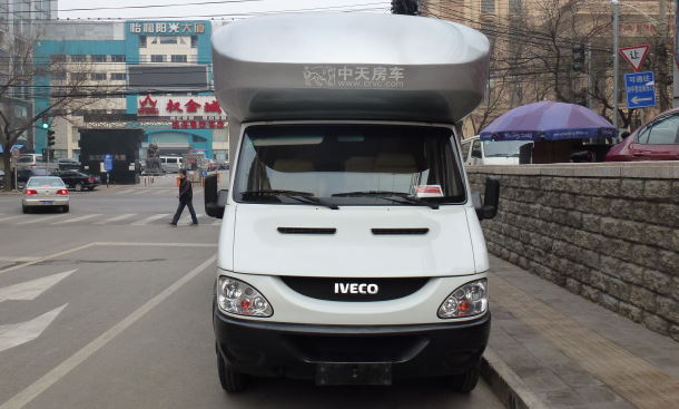 可是我之前从来没有在北京见到过房车,在回酒店的路上看到了另外一辆房车。也是中天的房车,就在我们的前面。遗憾的是在我们可以更近距离的看时他们转弯了。