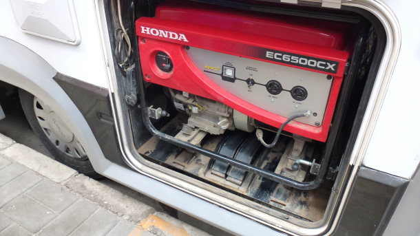 虽然发电机有个遥控器,但是不能在车厢里操作,需要拔出来。