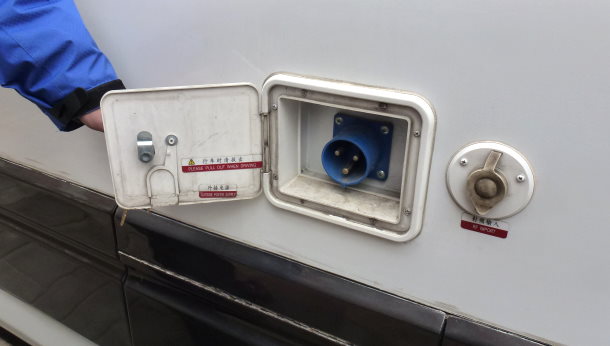 此款房车的电力和水的连接与供给非常方便