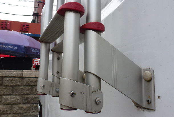 背面不仅是一个可以折叠的梯子,还有一个后视摄像头,在中国租赁房车有些东西我们没有预计到。